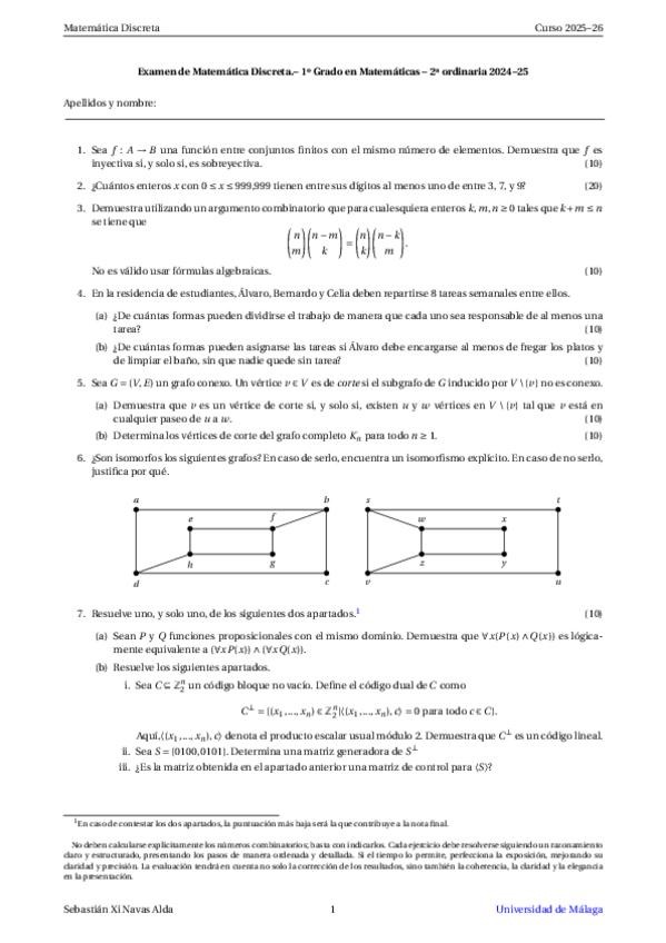 He publicado nuevos examenes de 1º Matemática Discreta: 2a-Ordinaria-2024-2025.pdf