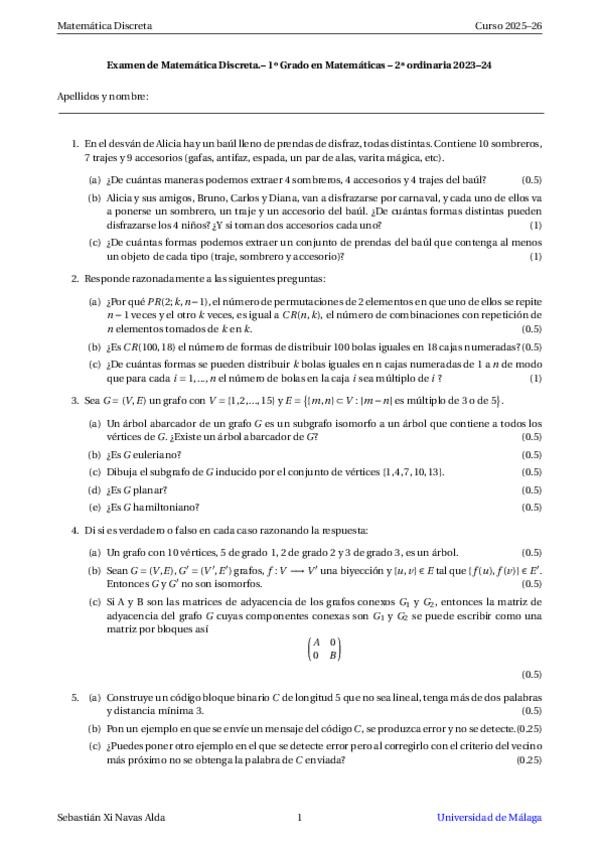 He publicado nuevos examenes de 1º Matemática Discreta: 2a-Ordinaria-2023-2024.pdf