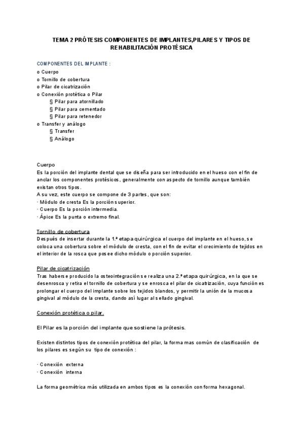 Resumen tema 2 rehabilitación de prótesis sobre implantes con tipo test incluidos