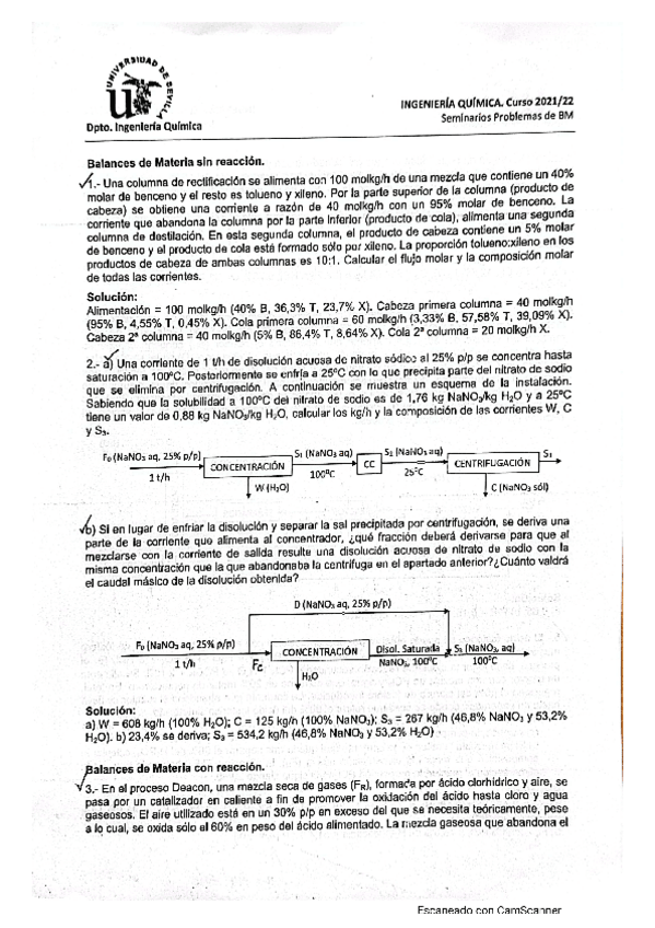 He publicado nuevos ejercicios de 3º Ingeniería Química: Balances de materia y energía