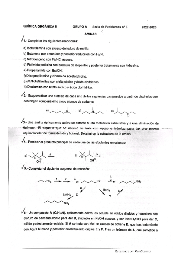 He publicado nuevos ejercicios de 3º Química Orgánica II: Series resueltas 2022/23