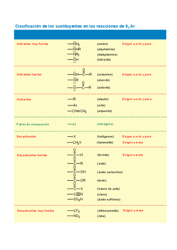 He publicado nuevos apuntes de 1º Química Orgánica I: Clasificación Sustituyentes en Reacciones de SArE tabla.pdf