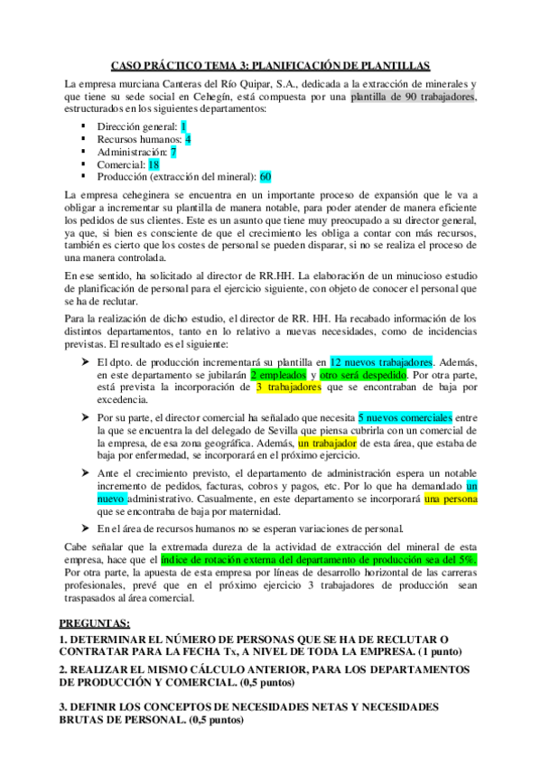 He publicado nuevos ejercicios de 3º Dirección de Recursos Humanos: Ejercicios Necesidades Netas y Productividad
