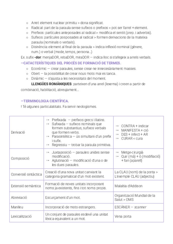 Identificació de l'estructura i Formació de termes mèdics.