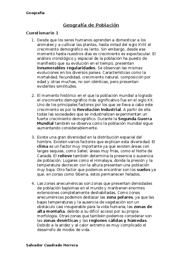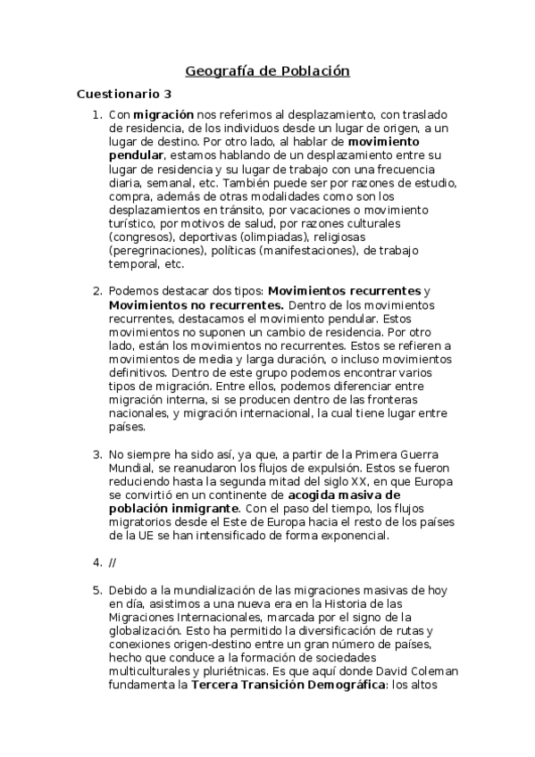 Cuestionarios Tema 1: G. de la Población