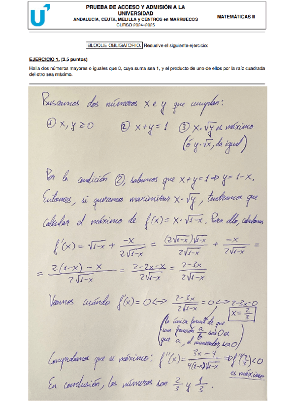 Ejercicios resueltos de Probabilidad y Estadistica de Examen de Prueba para EBAU 2024/2025