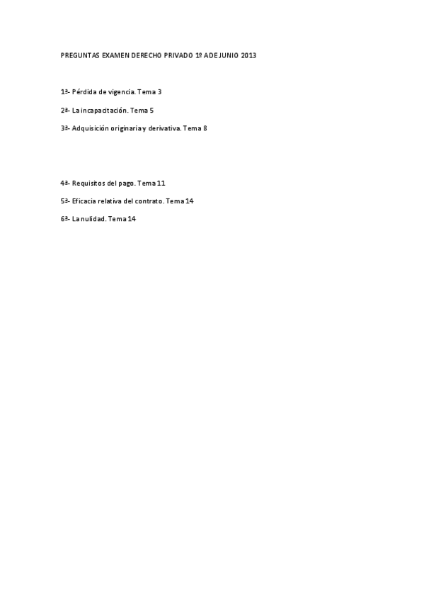 He publicado nuevos examenes de 1º Instituciones Básicas de Derecho Privado: PREGUNTAS EXAMEN DERECHO PRIVADO 1º ADE JUNIO 2013.pdf