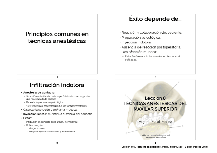 He publicado nuevos apuntes de 3º Cirugía Bucal I: Leccion 8-9. Tecnicas anestesicas_Padial-Molina.pdf