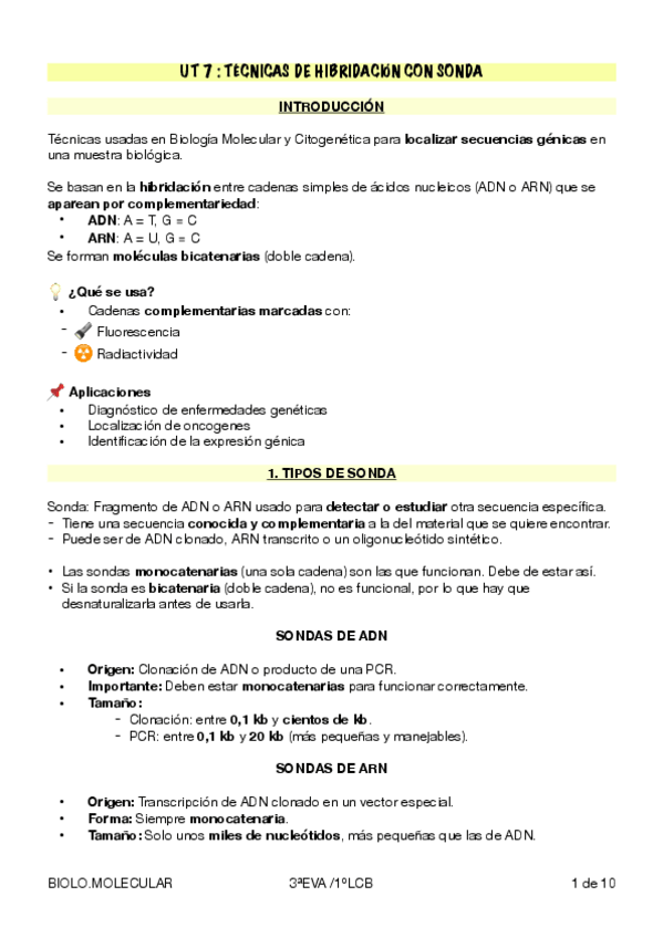 BIOLOGIA MOLECULAR UT 7 : TÉCNICAS DE HIBRIDACIÓN CON SONDA