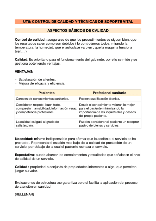 CONTROL DE CALIDAD Y TÉCNICAS DE SOPORTE VITAL