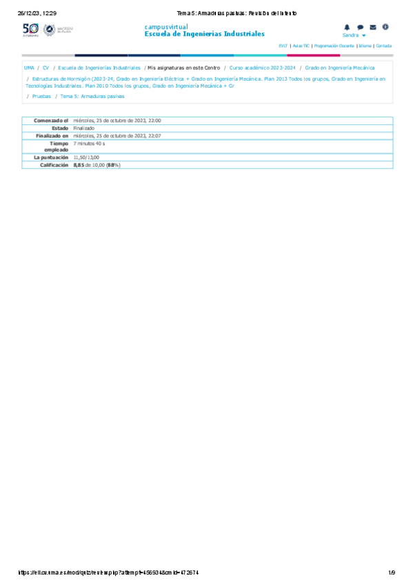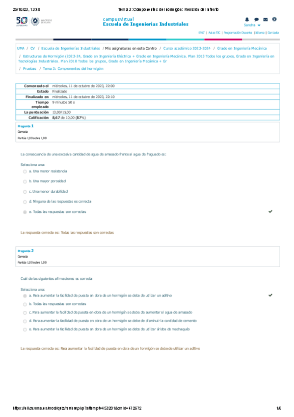 He publicado nuevos test de 4º Estructuras de Hormigón: Autoevaluaciones