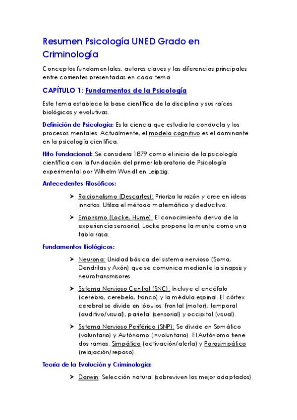 Mega resumen de Introducción a la Psicología. Grado en criminología UNED primer curso. Con glosario incluído.