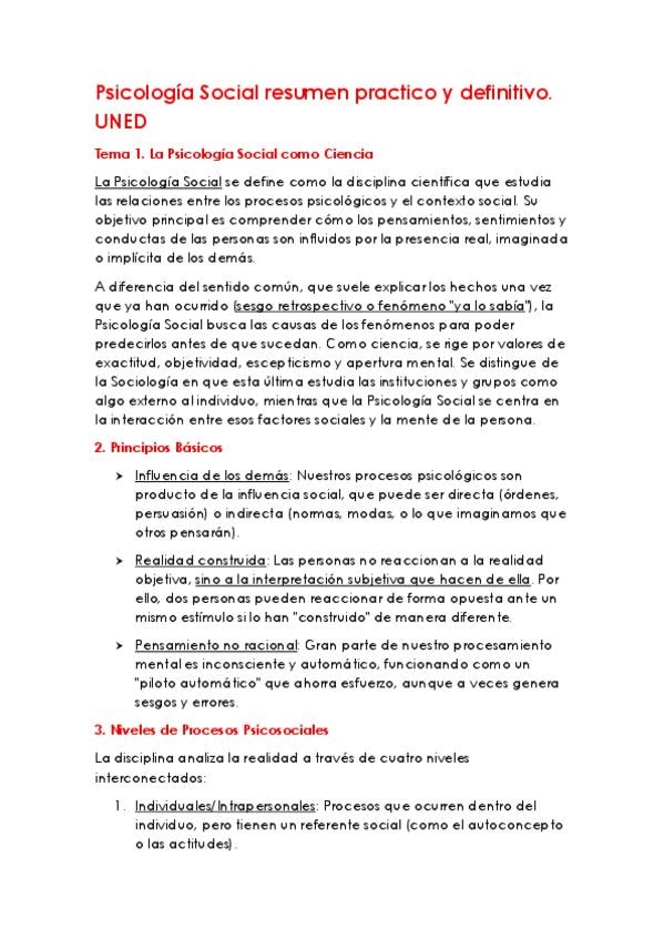 Resumen Psicología Social, practico definittivo, tips y glosario, Grado en criminología UNED