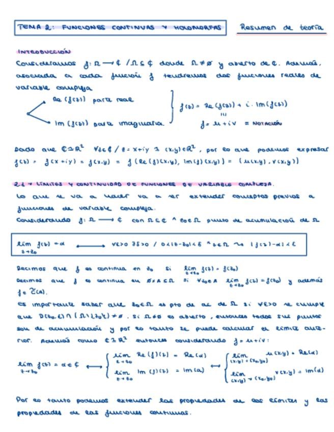 Síntesis completa de funciones continuas y holomorfas.