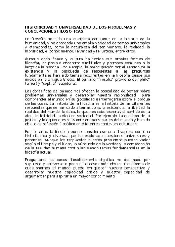 HISTORICIDAD Y UNIVERSALIDAD DE LOS PROBLEMAS Y CONCEPCIONES FILOSÓFICAS