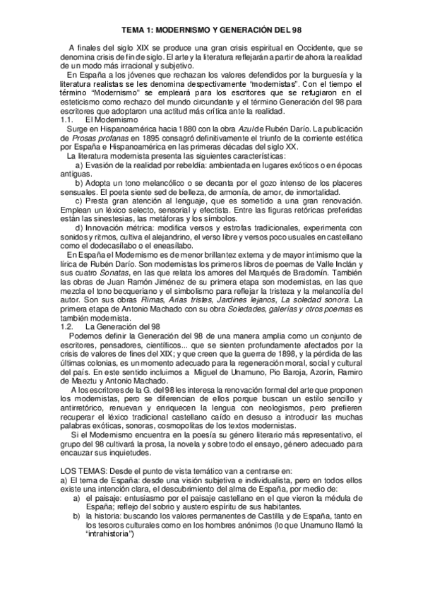 Temas de literatura con sus resúmenes del 1 al 3