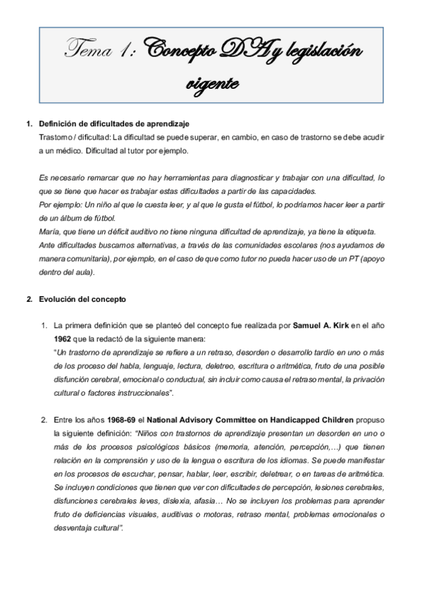 Apuntes y Ejercicios de Dificultades de Aprendizaje (optativa)