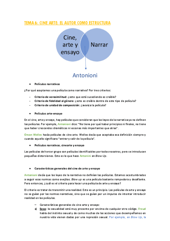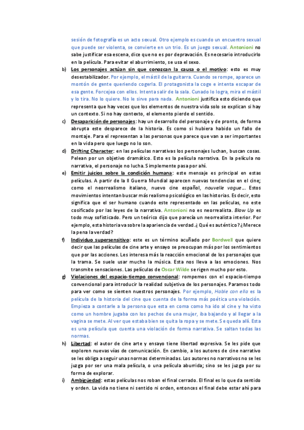 Ejemplos de algunas películas y fragmentos vistos en clase además de la descripción de los visionados obligatorios que entran en el examen