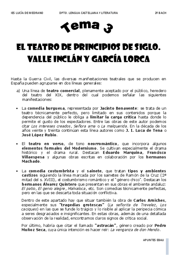 He publicado nuevos apuntes de Lengua Castellana y Literatura II: Literatura segundo bach 1-6