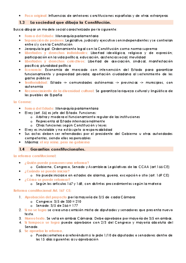 1. La Constitución española 2. Poder legislativo 3. Poder judicial 4. Poder ejecutivo 5. Administración pública