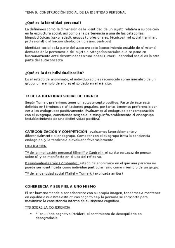 He publicado nuevos apuntes de 1º Psicología Social: tema 9 IDENTIDAD.docx