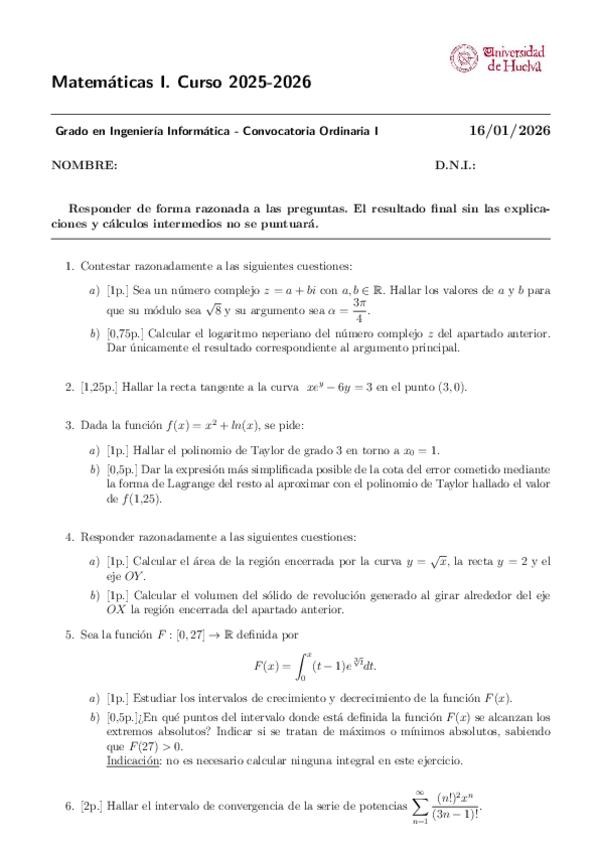 He publicado nuevos examenes de 1º Matemáticas I: Convocatoria-Enero-2026.pdf