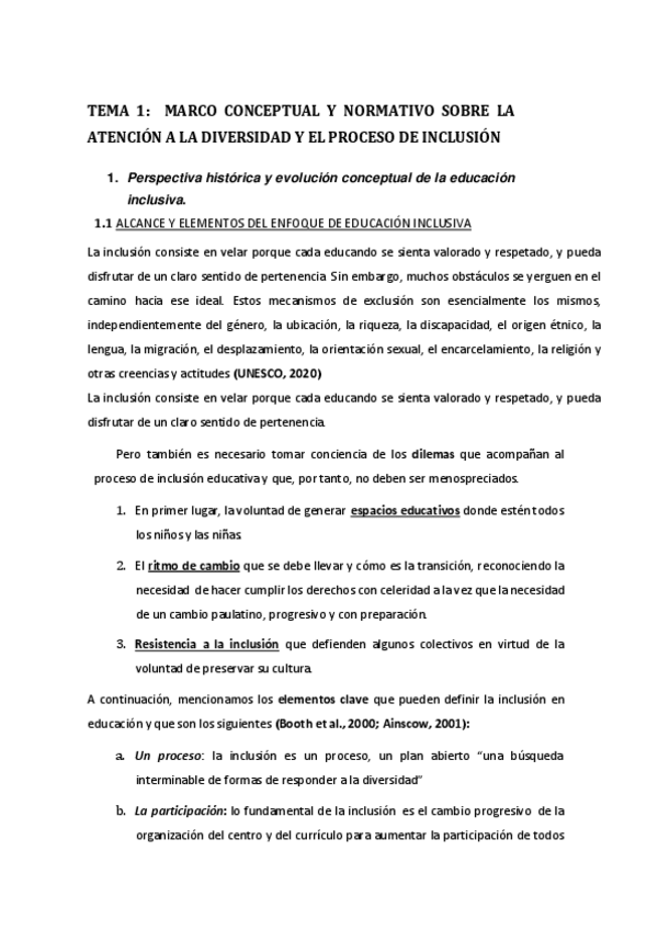 APUNTES RESUMIDOS TEMA 1 ATENCION A LA DIVERSIDAD