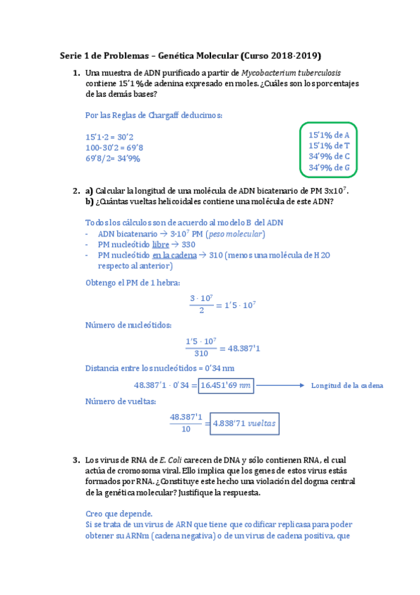 He publicado nuevos ejercicios de 1º Genética Molecular: SERIES 2018-19 RESUELTAS