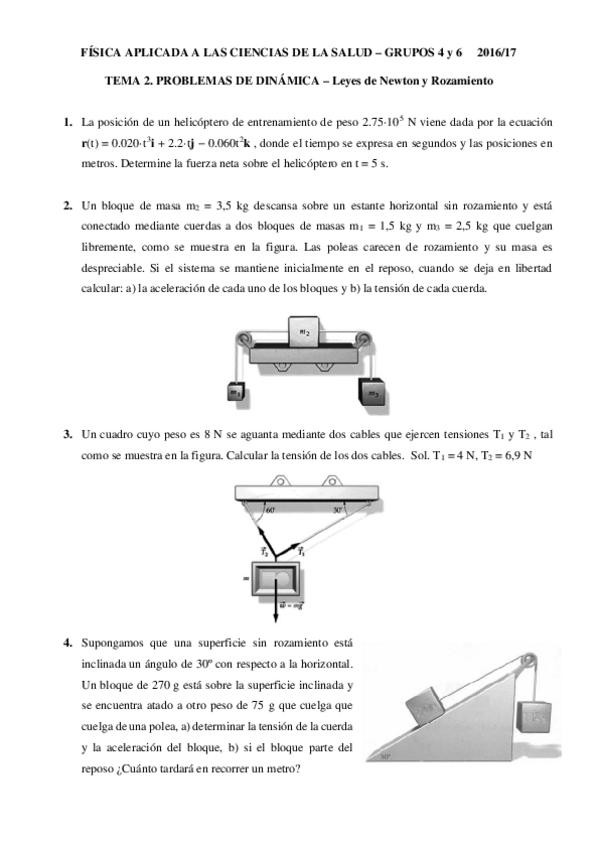 He publicado nuevos ejercicios de 1º Física Aplicada a las Ciencias de la Salud: Problemas dinamica 2016_17.pdf