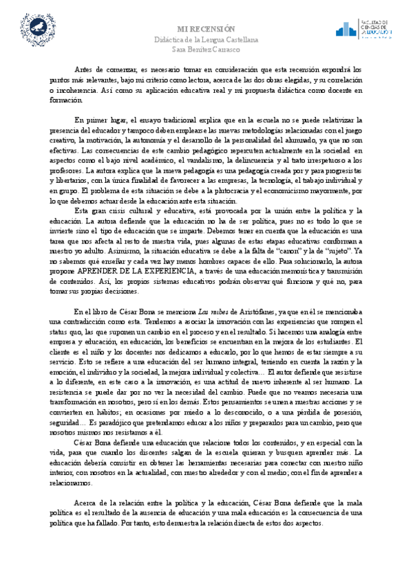 He publicado nuevos trabajos de 2º Didáctica de la Lengua Castellana: Recensión.pdf