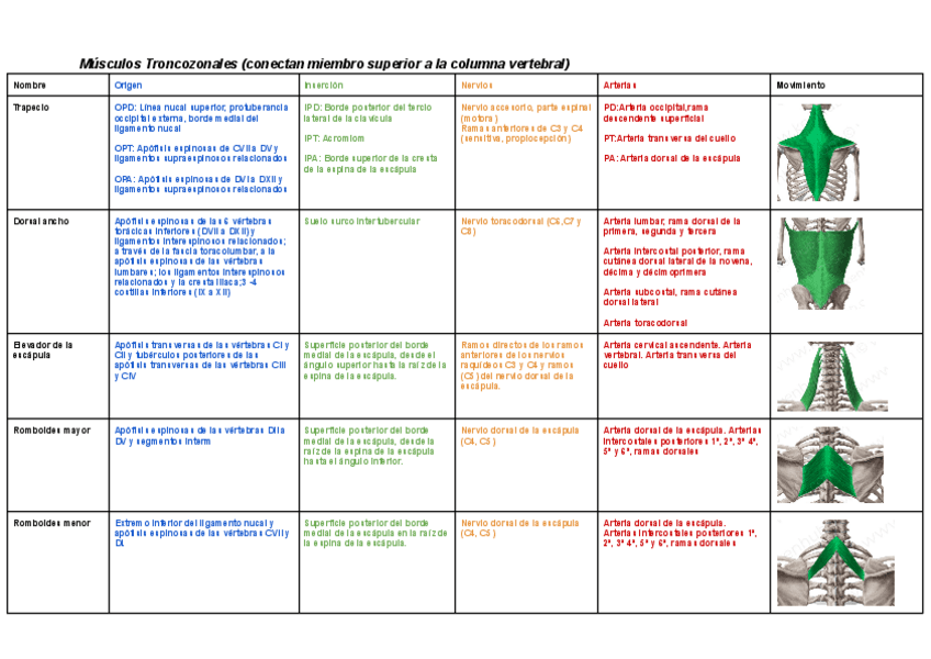 Tablas con fotos y esquemas de irrigación e inervación