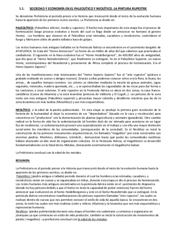 He publicado nuevos apuntes de Historia de España: 1.1 Sociedad y economía en el Paleolítico y Neolítico.pdf