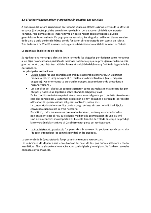 He publicado nuevos apuntes de Historia de España: 1.4 El reino visigodo- origen y organización política.pdf