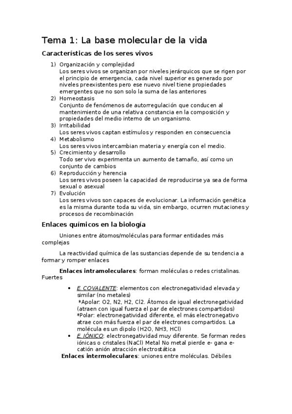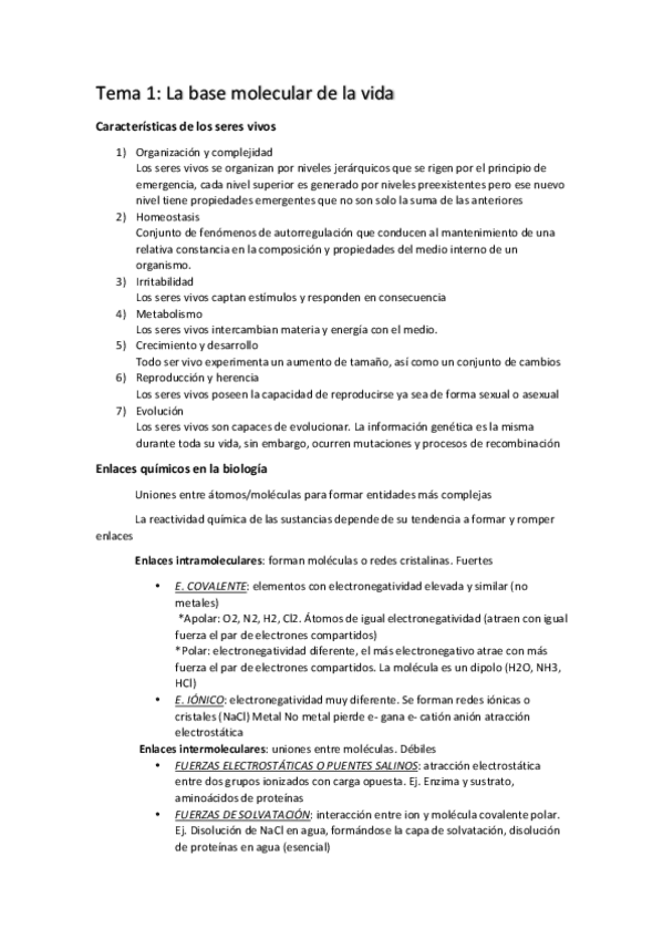 He publicado nuevos apuntes de Biología: Tema 1 La base molecular de la vida.pdf