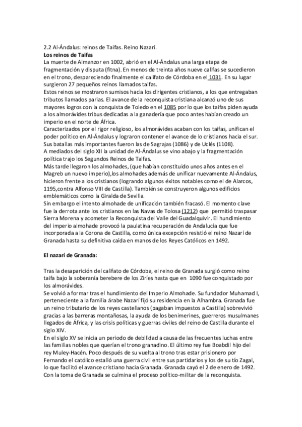 He publicado nuevos apuntes de Historia de España: 2.2 Al-Ándalus. einos de Taifas. Reino Nazarí..pdf