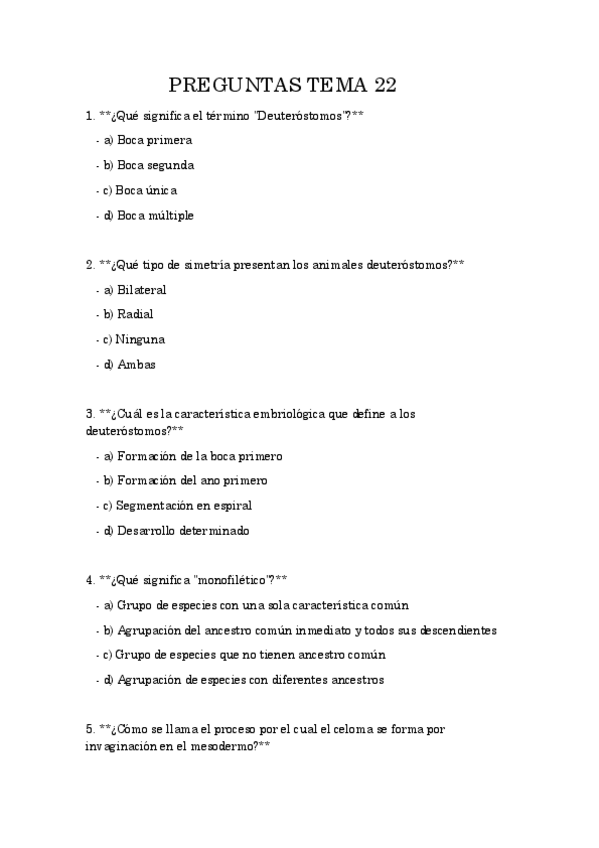 He publicado nuevos test de 1º Zoología: preguntas tipo test 4 parcial