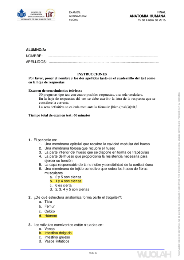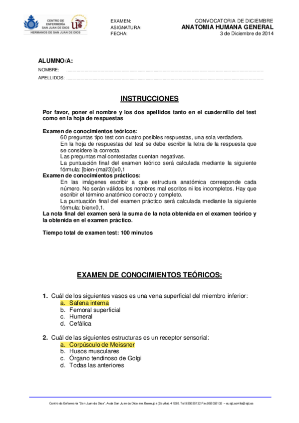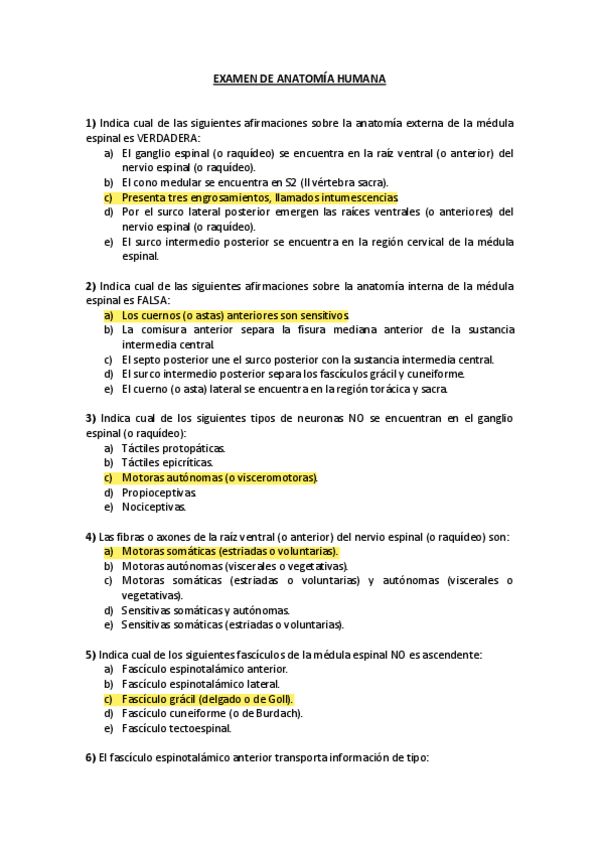 Exámenes CORREGIDOS Anatomía
