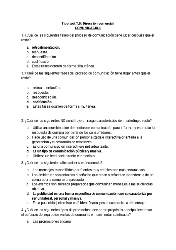 He publicado nuevos apuntes de 1º Dirección Comercial I: Tipo test 1-5 resueltos