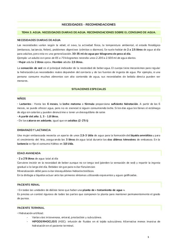 Recomendaciones y necesidades separadas por temas del Bloque I de Cuidados Nutricionales
