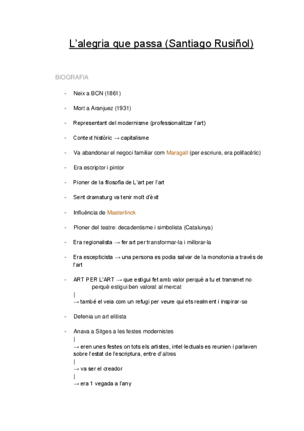 He publicado nuevos apuntes de 2º Literatura Catalana: L’alegria que passa (Santiago Rusiñol)