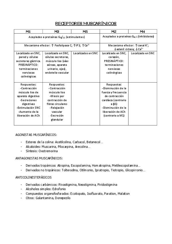 tablas resumen farmacologia II