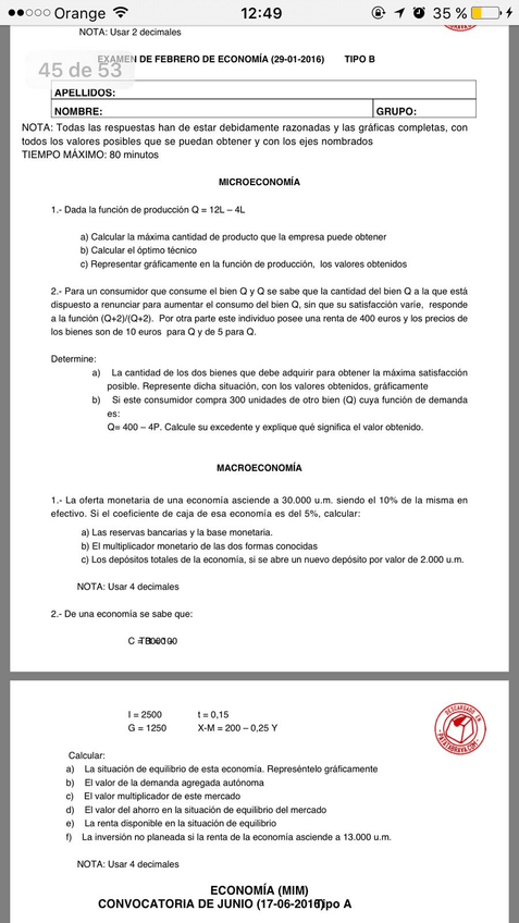 He publicado nuevos examenes de 1º Economía: Examen de Septiembre Micro y Macro