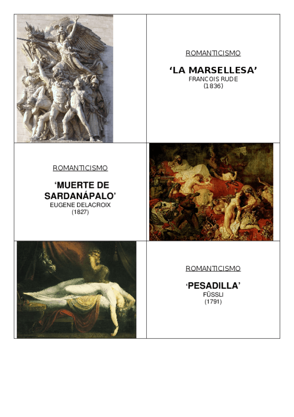listado de obras con autor, fecha y movimiento de todos los artistas hasta Henri Matisse.
