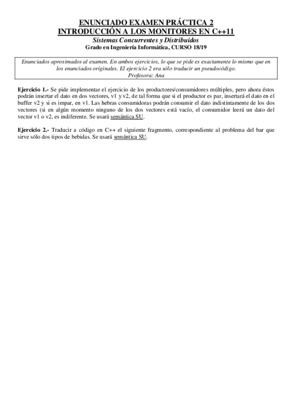 He publicado nuevos examenes de 2º Sistemas Concurrentes y Distribuidos: enunciadoexamenP21819.pdf