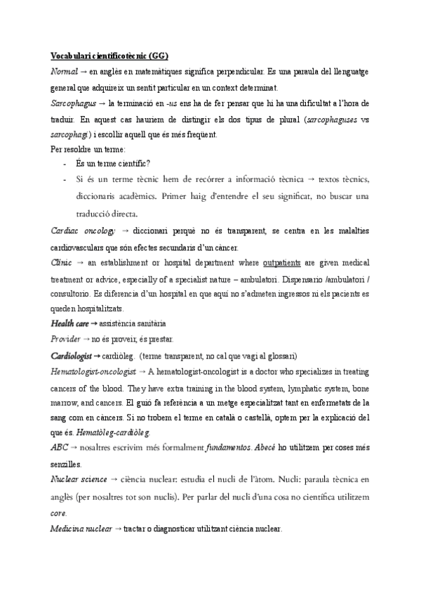 Todo el vocabulario necesario para las clases de grupo grande y el examen final de la asignatura con sus correspondientes explicaciones