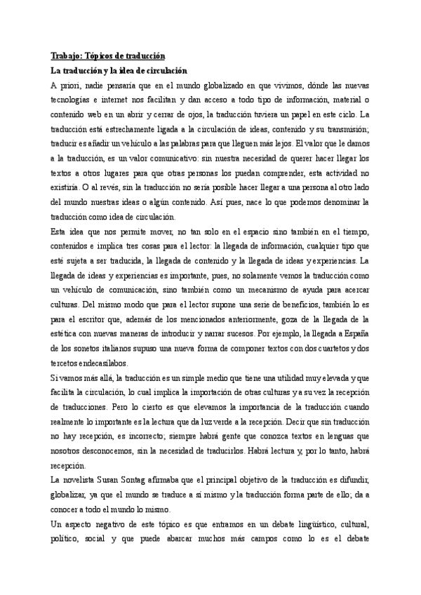 Primer trabajo a entregar donde se discuten los tópicos de la traducción