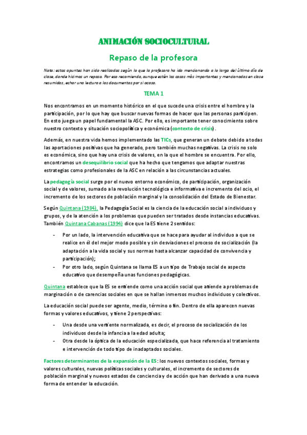 es un resumen de aquellas cosas que Helena ha contado en clase que son importantes de cara al exámen