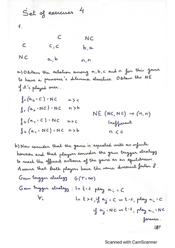 He publicado nuevos ejercicios de 2º Teoría de Juegos y Conducta Estratégica: Game Theory