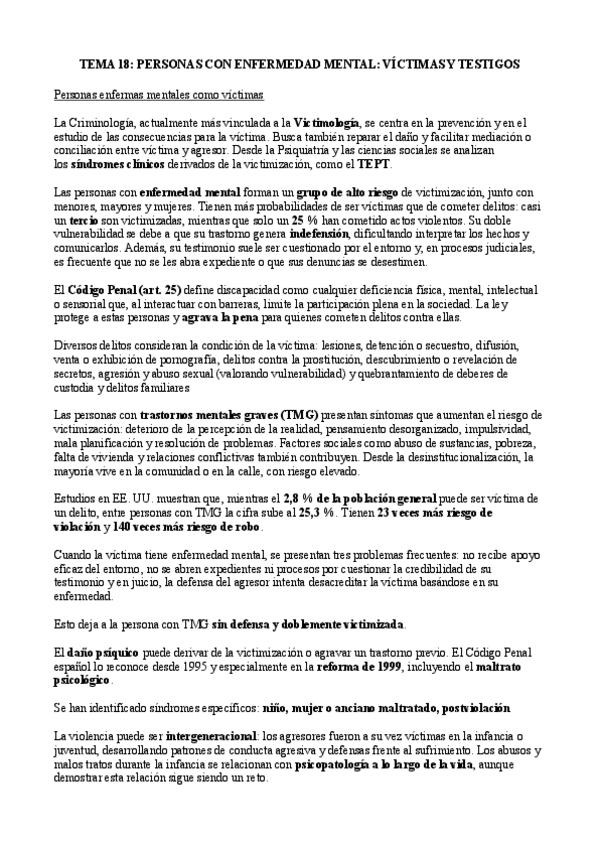 He publicado nuevos apuntes de 3º Psiquiatría Forense: TEMA-18-PERSONAS-CON-ENFERMEDAD-MENTAL-VICTIMAS-Y-TESTIGOS.pdf