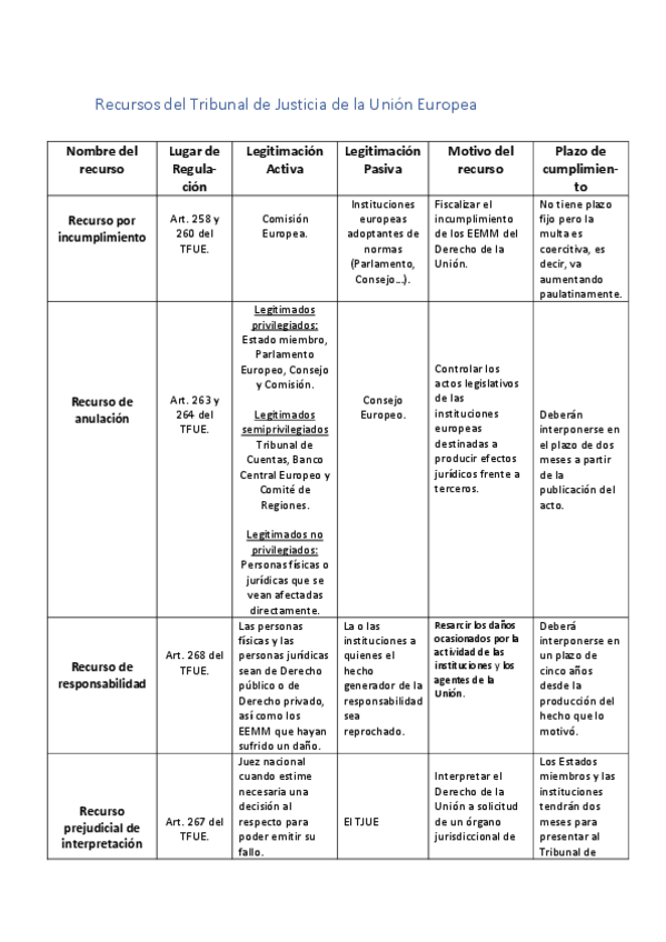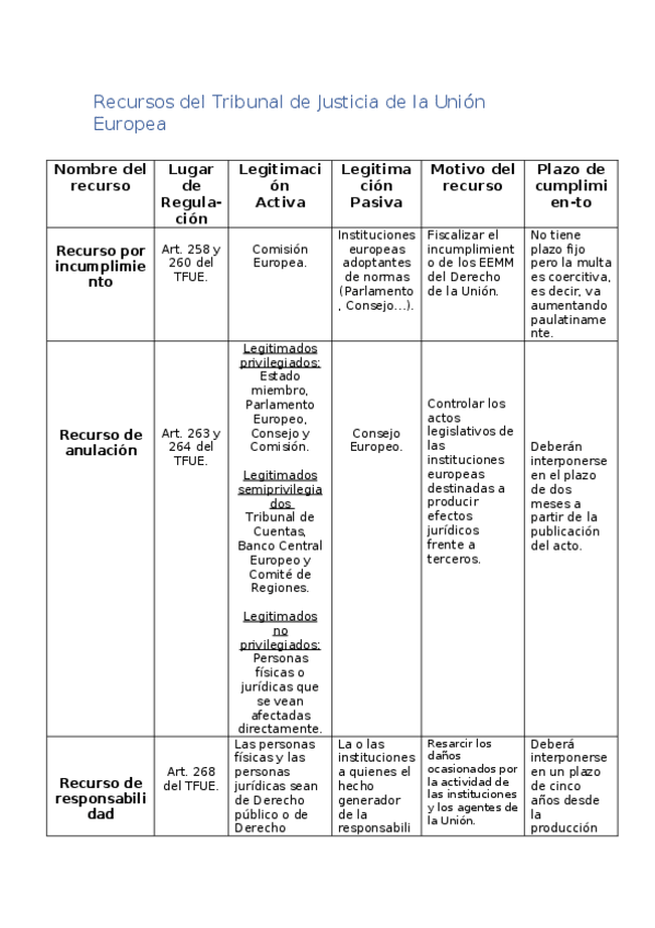 He publicado nuevos practicas de 2º Derecho Internacional Público (Instituciones Jurídicas de la Unión Europea): Práctica 6, Tabla de Recursos del TJUE